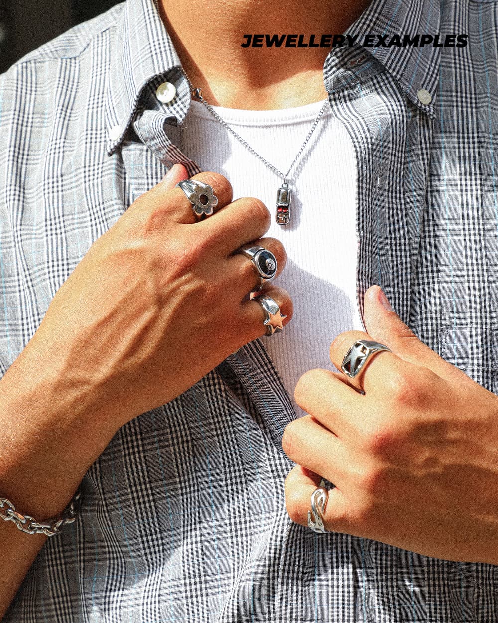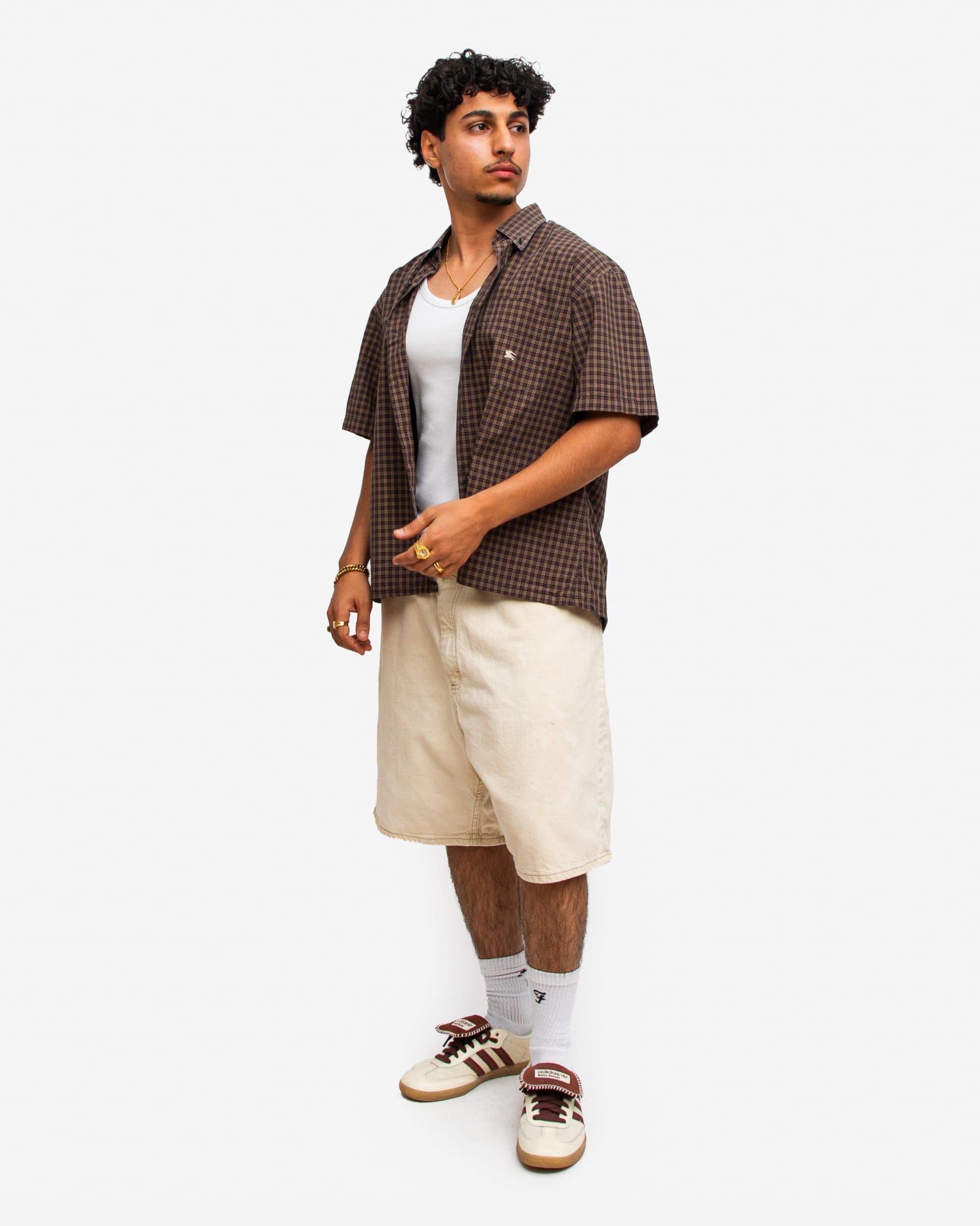 The shirts and jorts are vintage (second-hand), but freshly washed and quality-checked. The tees and jewelry are brand new and made by us.