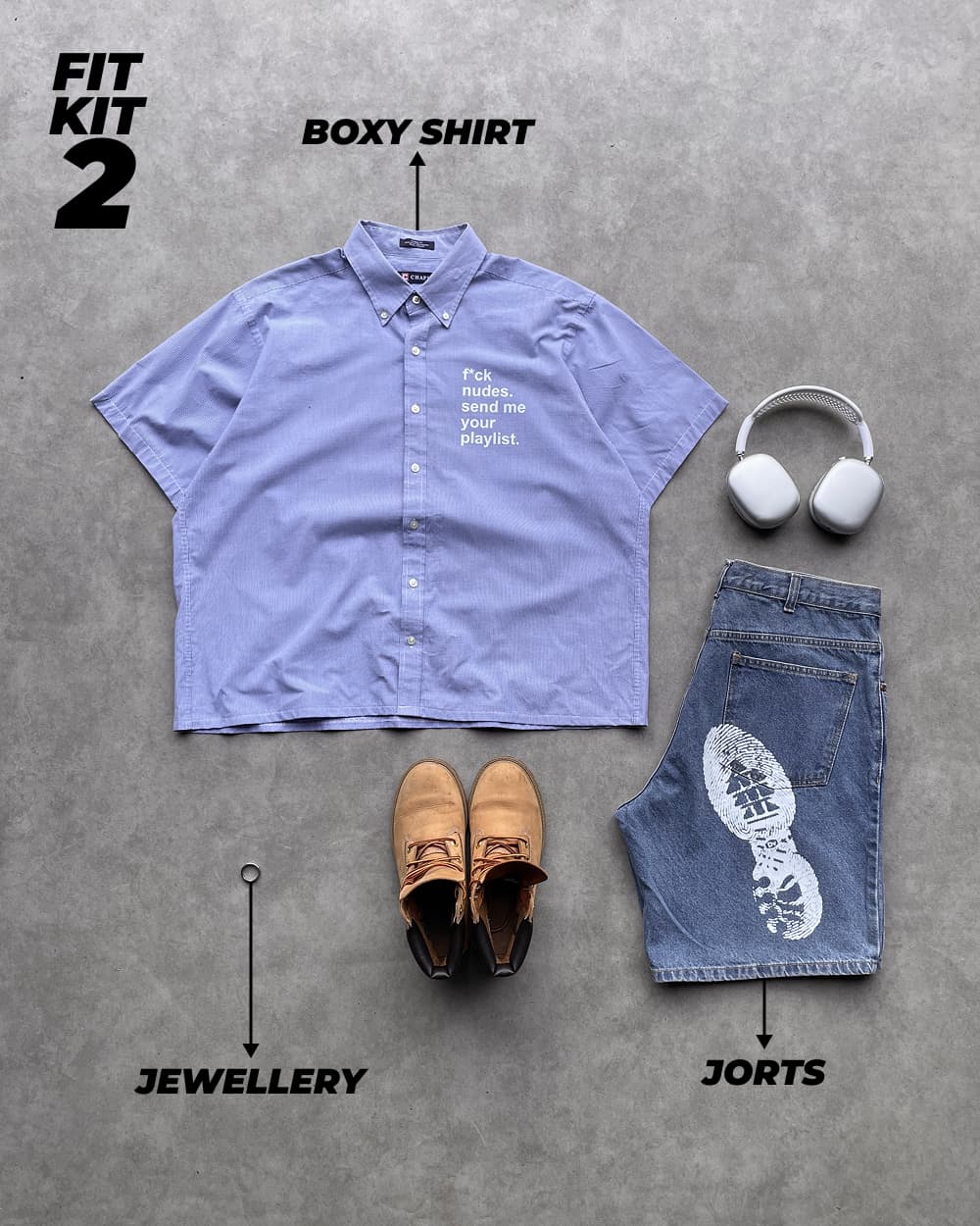 Each kit is a full fit, hand-styled by our team based on your size. The shirts and jorts are all vintage, one-of-one pieces you won’t find again. The tees and jewelry are our own designs, made in-house and built to last.