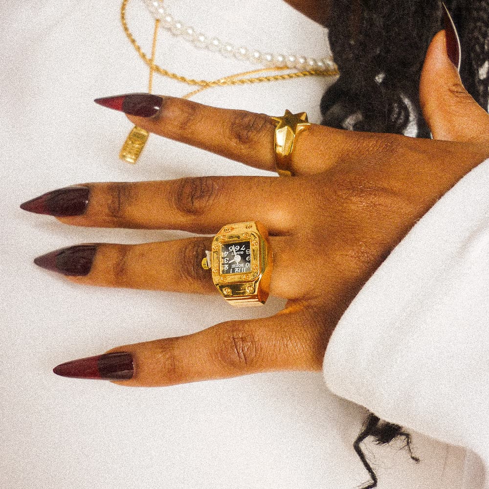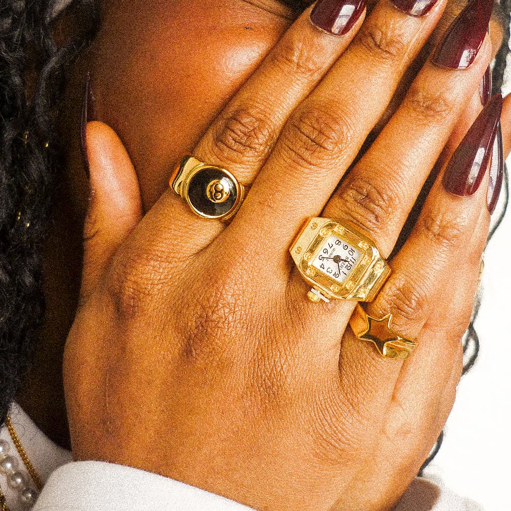 A statement ring that actually tells the time. Set it like a watch, wear it like a ring.