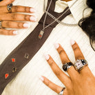 We started by selling second-hand vintage clothing to offer a unique, conscious alternative to fast fashion. When we launched our jewelry line, we stayed true to that ethos by choosing stainless steel — an extremely durable, corrosion-resistant material that is widely available and recyclable.
